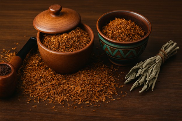 În special în rândul triburilor din America de Nord, cum ar fi lakota sau cherokee, tutunul avea o funcție clară în cadrul ritualurilor religioase. Țeava sacră, cunoscută drept „calumet”, era fumată în cadrul ceremoniilor de pace, de vindecare sau de inițiere. Împărțirea țevii în grup simboliza unitatea, încrederea și legătura între oameni și divinitate. În unele cazuri, tutunul era amestecat cu alte plante aromatice, iar compoziția acestui amestec devenea o formă de artă spirituală. În cultura amerindiană, tutunul era sfânt, nu doar recreativ. Consumul nu era impulsiv sau dependent, ci ghidat de semnificație, disciplină și respect.